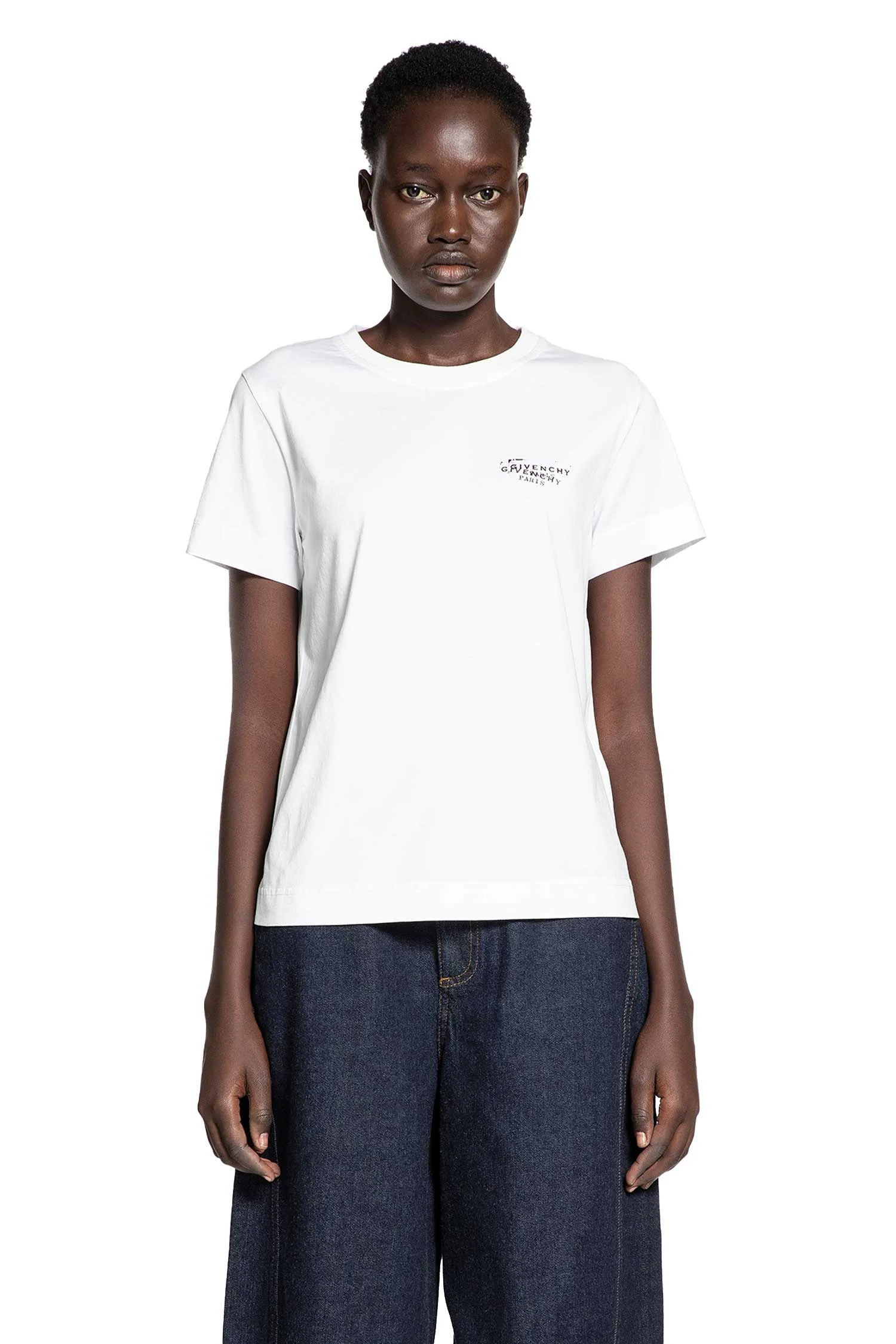 DESCRIPTION - The Givenchy Stamp T-Shirt in white channels everyday ease through a refined, graphic lens. Crafted from soft cotton jersey, it features a round neck, dropped shoulders, and a front Givenchy stamp print that nods to archival branding. With its regular fit and minimal construction, the piece embodies the house s balance of street-influenced attitude and understated Parisian precision. - White - Cotton jersey - Round neck - Front givenchy stamp graphic print - Dropped shoulders - Regular fit DETAILS - Made in: Portugal - Composition: 100% Cotton - Model code: BW70FJP7A7 100 - Item ID: 9957548032342