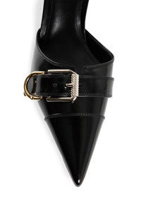 - Black - Brushed calfskin - Front decorative metal buckles - Pointed toe - Elasticated slingback strap - Stiletto heel - Leather sole DETAILS - Made in: Italy - Composition: 100% Calfskin - Model Code: BE403LE28Z 001 - Item ID: 8931727016278 SIZE & FIT Heel height 7,5 cm Heel height may vary according to shoe size