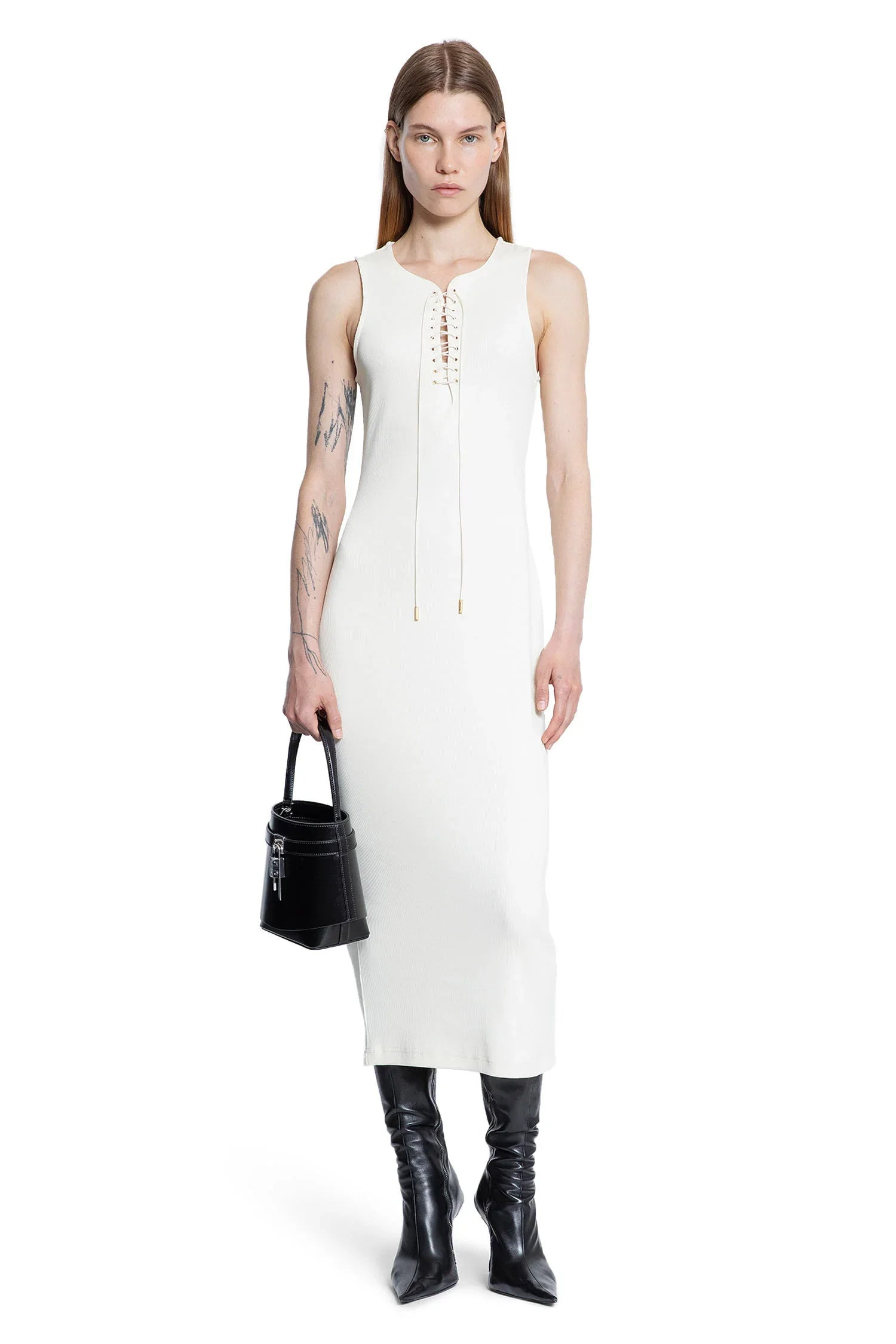 DESCRIPTION - Natural - Lightweight cotton rib jersey - Round neck - Quarter lace-up closure - Sleeveless - Back gold-metal 4g plaque - Fitted DETAILS - Made in: Portugal - Composition: 98% Cotton 2% Elastane - Model code: BW22CK311T101 101 - Item ID: 9624715526486 SIZE & FIT Model wears size S Model Height 174 cm Bust 78 cm Waist 60 cm Hips 86 cm