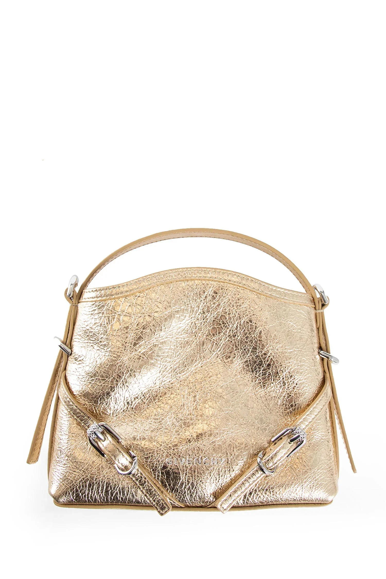 DESCRIPTION - Golden sand - Crackle paint leather - Front embossed logo - Front engraved-logo buckled straps - Zip closure - Top handle - Adjustable and removable leather shoulder strap DETAILS - Made in: Italy - Composition: 100% Calfskin - Model code: BB60NHB1ZB279 279 - Item ID: 9525096022358