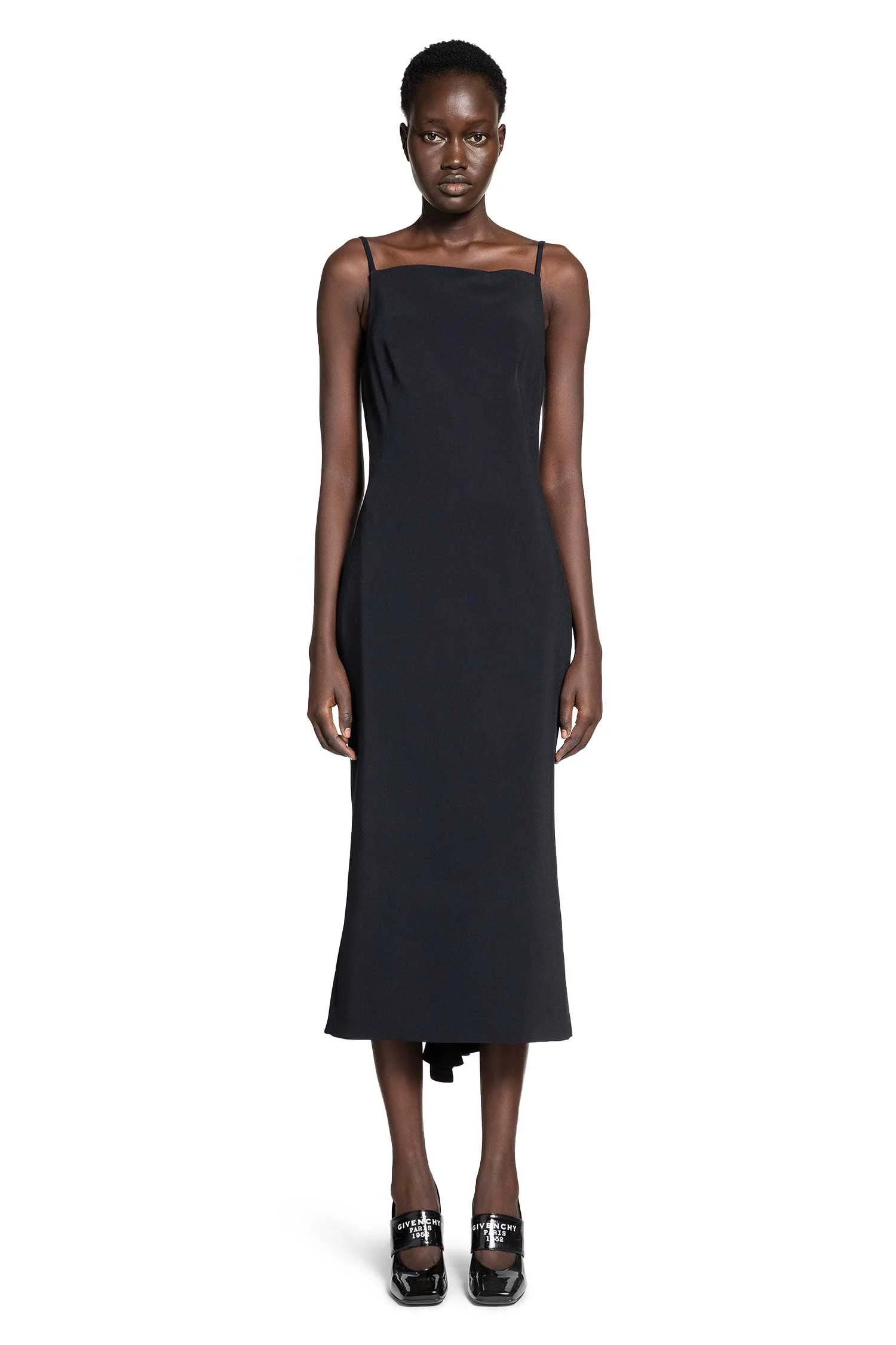 DESCRIPTION - The Givenchy Sliced Midi Dress in black Crepe Cady embodies architectural elegance with a conceptual edge. Featuring a square neckline, sleeveless cut, and slim fit, the design is punctuated by a back zip closure and a draped insert that adds sculptural movement. Minimalist yet striking, the dress translates Givenchy s modern, runway-inspired vision into a refined, statement-making silhouette.black - Crepe cady - Square neckline - Back zip closure - Sleeveless - Back zip closure - Back draped insert - Slim fit DETAILS - Made in: Italy - Composition: 65% Viscose 32% Acetate 3% Elastane - Model code: BW22F9164K 001 - Item ID: 9957542297942
