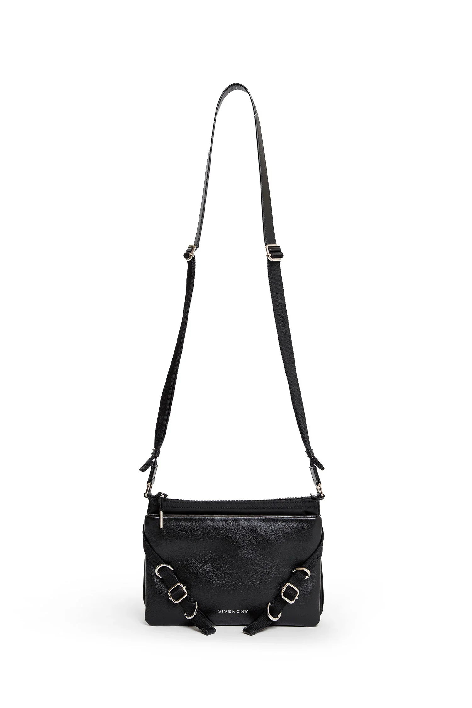 DESCRIPTION - Black - Tumbled calfskin leather and nylon - Front webbing straps with engraved logo buckles - Front embossed logo - Adjustable shoulder strap - Zip closure DETAILS - Made in: Italy - Composition: 100% Calfskin - Model code: BKU04WK1ZV 001 - Item ID: 9409889763670