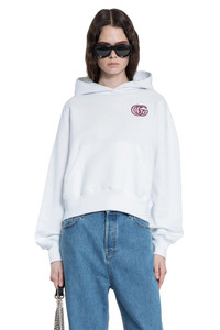 DESCRIPTION - White - Cotton jersey - Fixed hood - Double g chest embroidery - Kangaroo pocket - Ribbed hem and cuffs - Boxy fit DETAILS - Made in: Italy - Composition: 100% Cotton - Model code: 787274XJG46 9692 - Item ID: 9525131673942 SIZE & FIT Model wears size S Model Height 181 cm Bust 83 cm Waist 57 cm Hips 88 cm