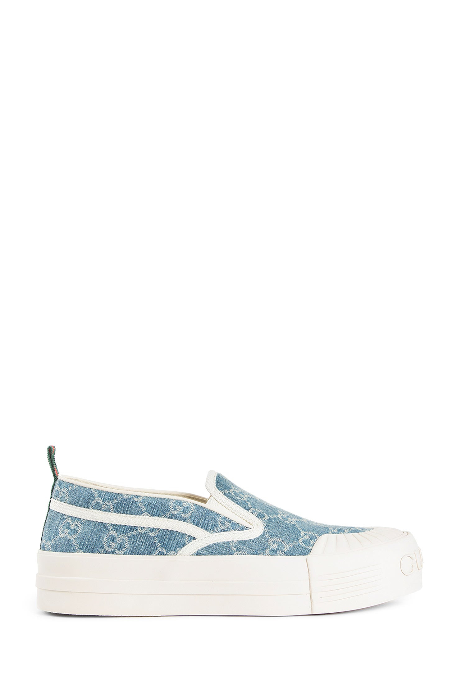 DESCRIPTION - Light blue - GG Denim - Grosgrain trim - Back green and red web pull tab - Rubber sole and toe cap DETAILS - Made in: Spain - Composition: 100% Cotton - Model code: 836059FAEZJ 4646 - Item ID: 9729924399446