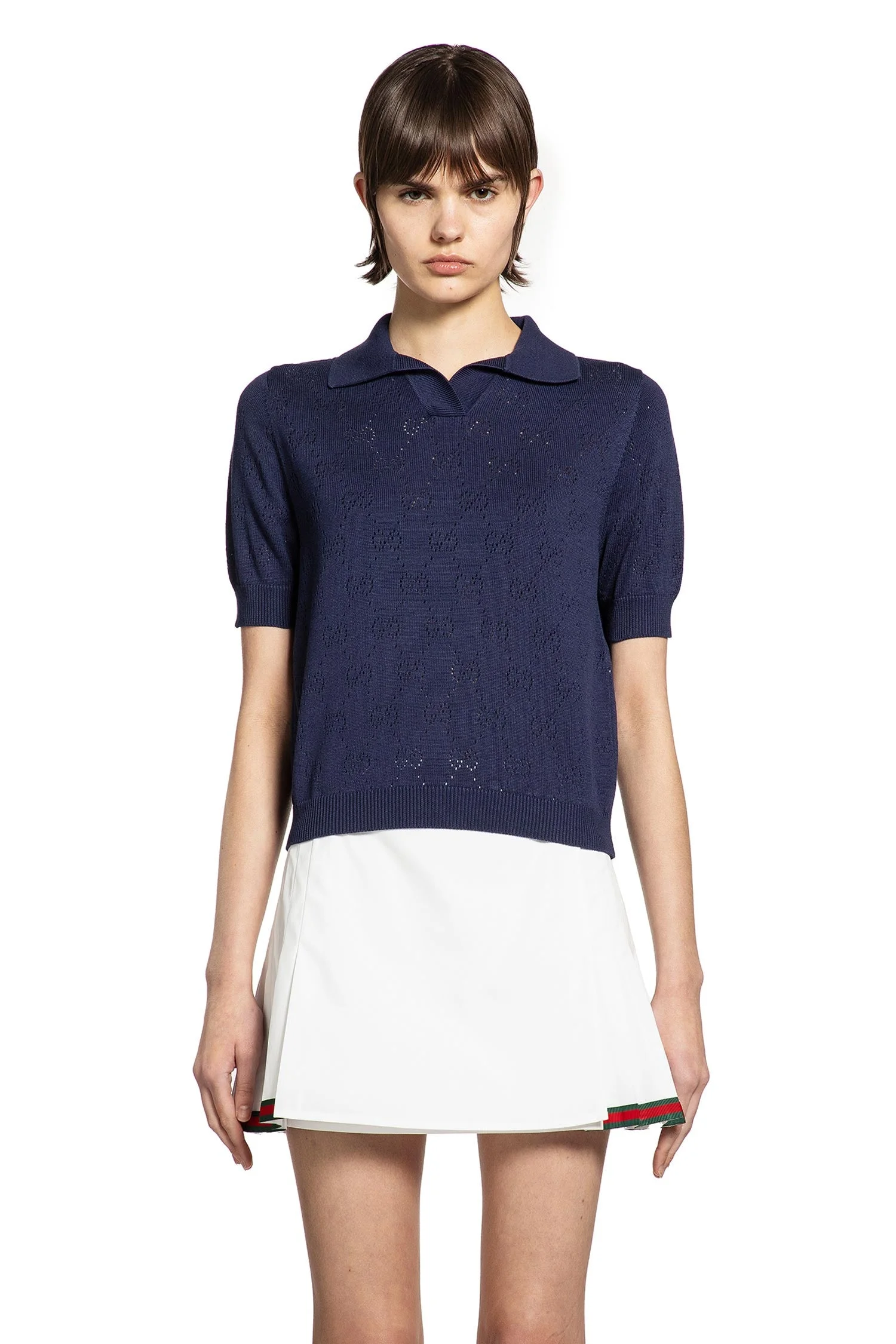 Gg Pointelle Cotton Silk Polo Shirt