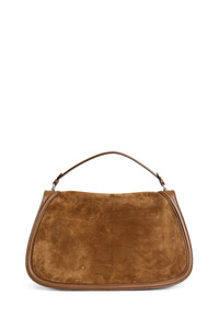 DESCRIPTION - Brown - Suede and leather trim - Leather top handle - Adjustable and removable shoulder strap - Front enamelled round interlocking g plaque - Flap with magnetic closure - Internal zipped poket - Cotton linen lining DETAILS - Made in: Italy - Composition: 100% Calfskin - Model code: 815723CAAAU 2808 - Item ID: 9463075045718