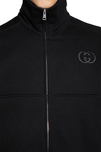 DESCRIPTION - Gucci redefines casual sophistication with this black brushed cotton jersey sweatshirt. Detailed with an embroidered Interlocking G, stand collar, and ribbed trims, it merges sporty comfort with timeless elegance. Perfect layered under outerwear or styled solo for a polished, contemporary look. - Black - Brushed cotton jersey - Zip closure DETAILS - Made in: Italy - Composition: 100% Cotton - Model code: 851939XJHKH 1043 - Item ID: 9918386340182