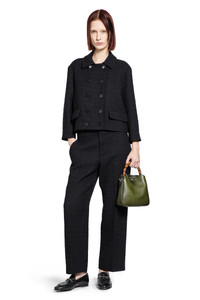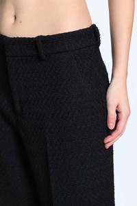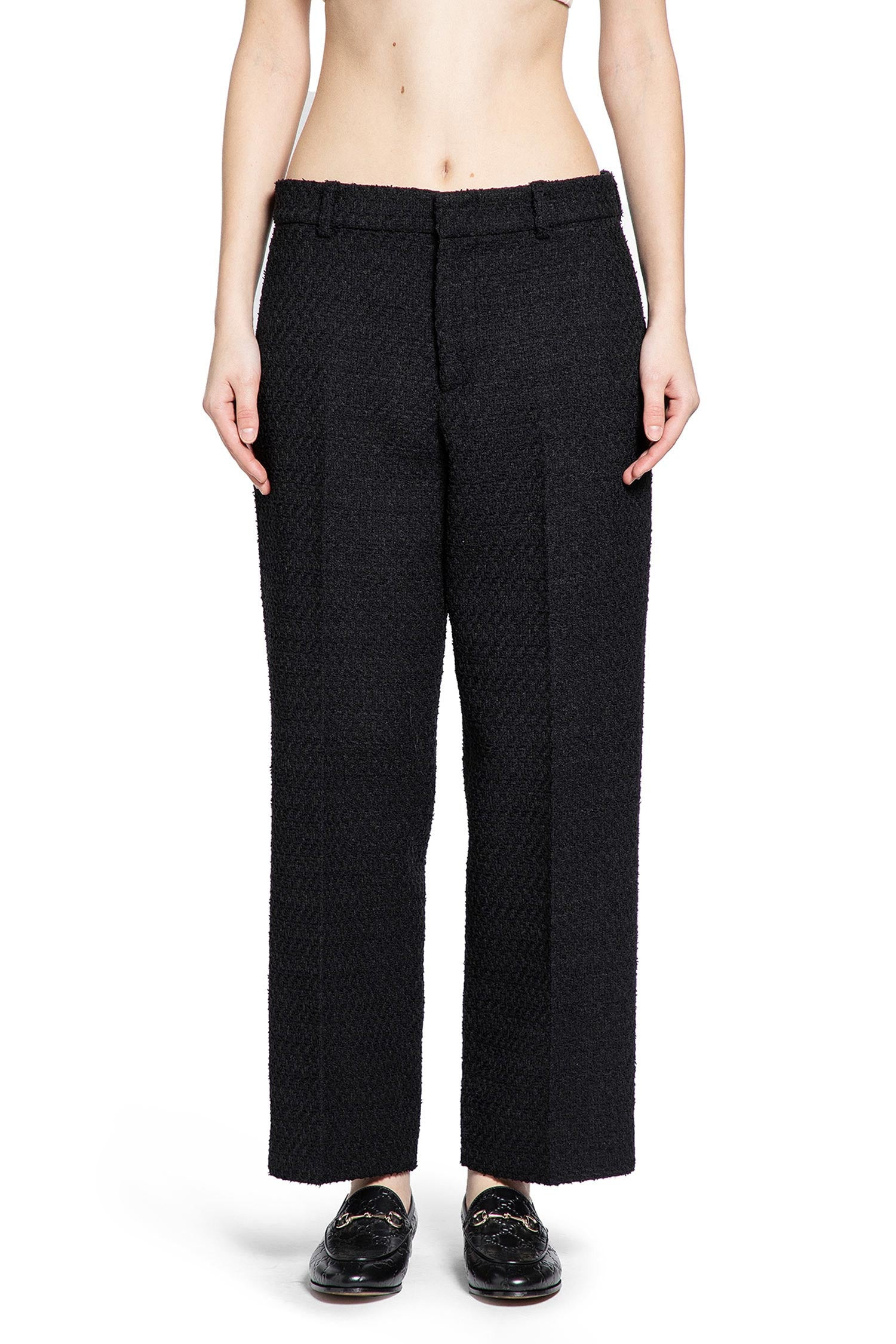 DESCRIPTION - Black - Wool tweed - Belt holes - Hook and zip closure - Leg crease - Side pockets - Back interlocking g buttoned pockets - Tapered leg DETAILS - Made in: Italy - Composition: 57% Wool 43% Polyamide - Model code: 837421Z7ATM 1000 - Item ID: 9768001470806