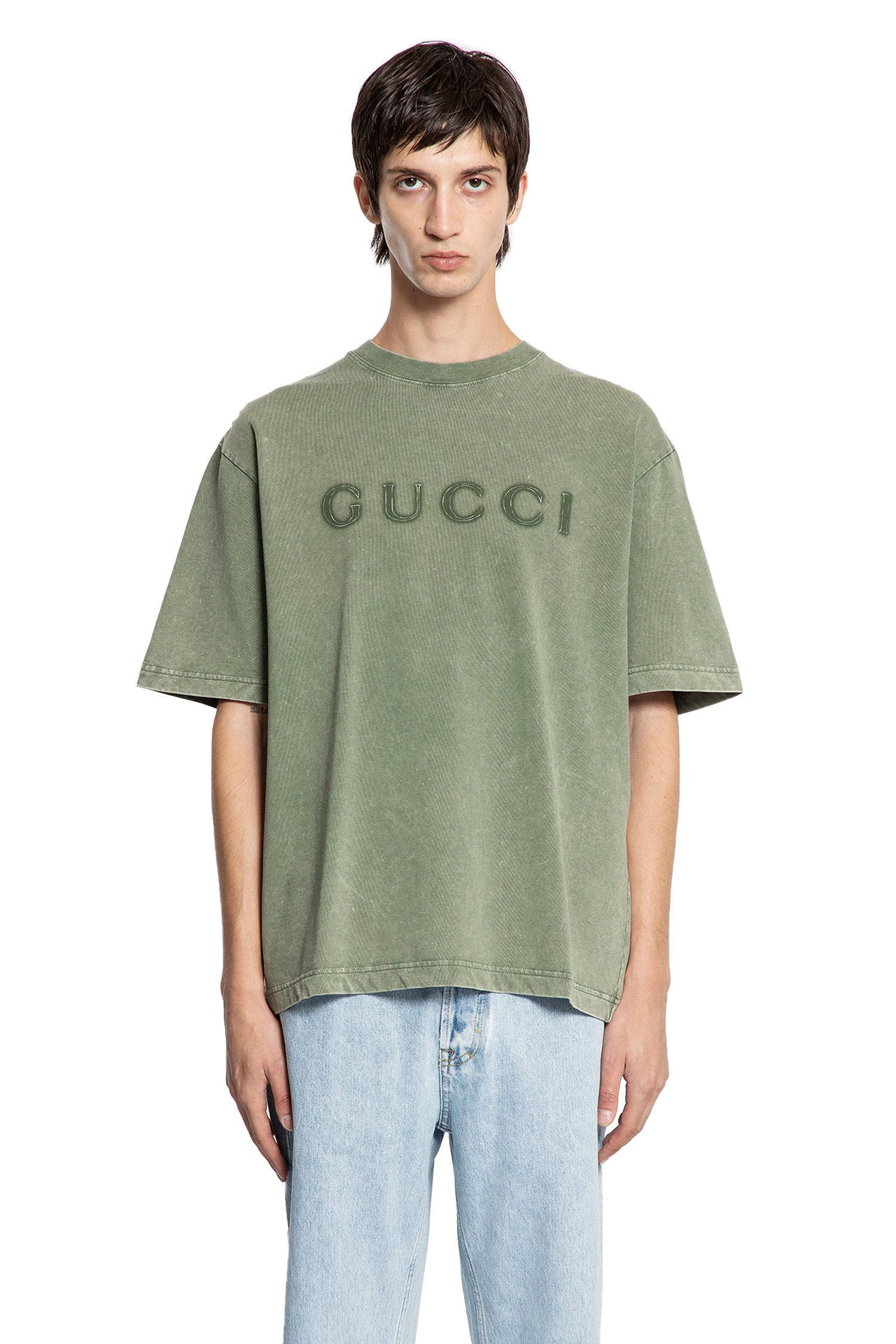 DESCRIPTION - Forest green - Heavyweight cotton jersey - Garment dyed - Round neck - Front vintage logo print - Dropped shoulders - Short sleeves - Oversized fit DETAILS - Made in: Italy - Composition: 100% Cotton - Model code: 798115XJHDF 3266 - Item ID: 9700391846230 SIZE & FIT Model wears size S Model Height 186 cm Chest 89 cm Waist 72 cm Hips 90 cm