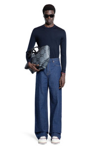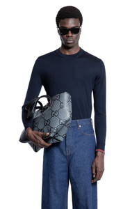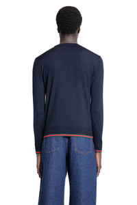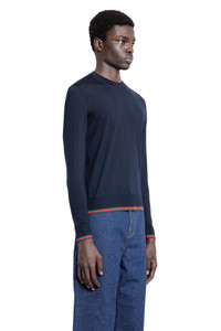 DESCRIPTION - Dark blue - Fine wool knit - Crewneck - Dropped shoulders - Ribbed green and red web hem and cuffs DETAILS - Made in: Italy - Composition: 100% Wool - Model code: 814531XKEJ1 4060 - Item ID: 9409619689814 SIZE & FIT Model wears size S Model Height 190 cm Bust 87 cm Waist 73 cm Hips 88 cm