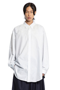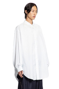 DESCRIPTION - Multicolor - White/blue - Pinstriped - Classic collar with faux fur trim - Button closure - Dropped shoulders - Long gathered sleeves - Buttoned cuffs - Side splits - Back box pleat - Asymmetric hem - Oversized fit DETAILS - Made in: Italy - Composition: 100% Cotton - Model code: HMMB60001PHB049 104 - Item ID: 9720534073686 SIZE & FIT Model wears size S Model Height 188 cm Bust 88 cm Waist 69 cm Hips 88 cm