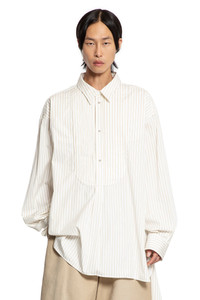 DESCRIPTION - Runway style - Natural - Pinstriped - Classic collar - Button closure - Front bib - Dropped shoulders - Long sleeves - Buttoned cuffs - Side splits - Dropped back - Back box pleat - Oversized fit DETAILS - Made in: Italy - Composition: 100% Cotton - Model code: HMMB60026RHB125 102 - Item ID: 9720534303062 SIZE & FIT Model wears size S Model Height 188 cm Bust 88 cm Waist 69 cm Hips 88 cm