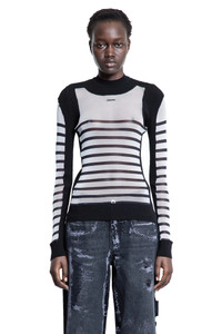 DESCRIPTION - Black and white - Viscose nylon knit - Mock neck - Mariniere striped tulle appliques - Front embroidered logo - Back locker loop - Ribbed hem and cuffs - Fitted DETAILS - Made in: Italy - Composition: 100% Polyamide Fabric 2: 70% Viscose 30% Polyester - Model code: 2533FPL069T574 0100 - Item ID: 9426100355414 SIZE & FIT Model wears size S Model Height 177 cm Bust 74 cm Waist 58 cm Hips 85 cm