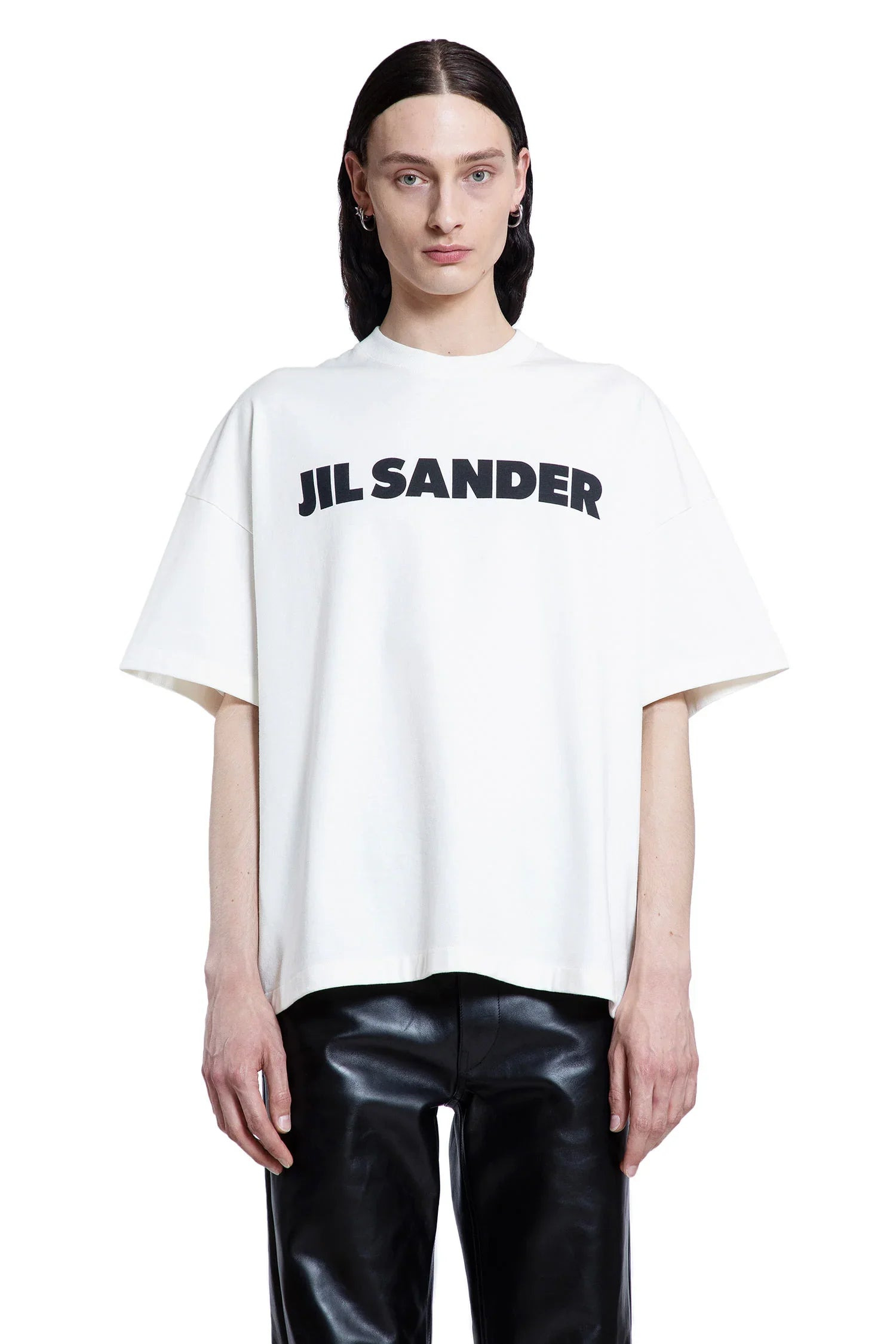 - Porcelain - Stiff white cotton jersey - Round neck - Front logo print - Short sleeves - Relaxed, boxy fit DETAILS - Made in: Italy - Composition: 100% Cotton - Model Code: J21GC0001J45148 102 - Item ID: 7599248277682 SIZE & FIT Model wears size M Model Height 188 cm Chest 91 cm Waist 70 cm Hips 92 cm