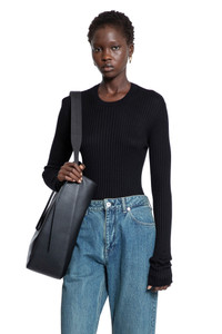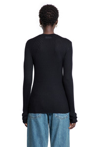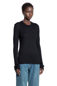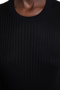 DESCRIPTION - Black - Silk Ribbed-Knit - Crewneck - Elongated sleeves - Fitted DETAILS - Made in: Italy - Composition: 100% Silk - Model code: J04GP0111J16137 001 - Item ID: 9700186587478 SIZE & FIT Model wears size 38 Model Height 180 cm Bust 77 cm Waist 57 cm Hips 87 cm