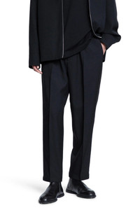 DESCRIPTION - Black - Recycled polyester gabardine - Elasticated waistband - Belt holes - Hook and zip closure - Side pockets - Back flap pockets - Drop crotch - Cropped hems - Relaxed fit DETAILS - Made in: Italy - Composition: 100% Polyester - Model code: J21KA0012J70001 001 - Item ID: 7451651670194 SIZE & FIT Model wears size 46 Model Height 188 cm Chest 88 cm Waist 69 cm Hips 86 cm we recommend taking one size down