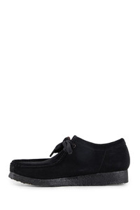 DESCRIPTION - Collaboration with Clarks - Black - Nubuck leather - Sun-bleached canvas side - Diagonal square toe - Draped panel - Lace closure - Removable leather collaboration logo tag - Crepe and eva sole - Each item features individual irregularities making each piece unique DETAILS - Made in: South Korea - Composition: 100% Calfskin 100% Cotton - Model code: JK25SSCL01 BLACK - Item ID: 9527233970518