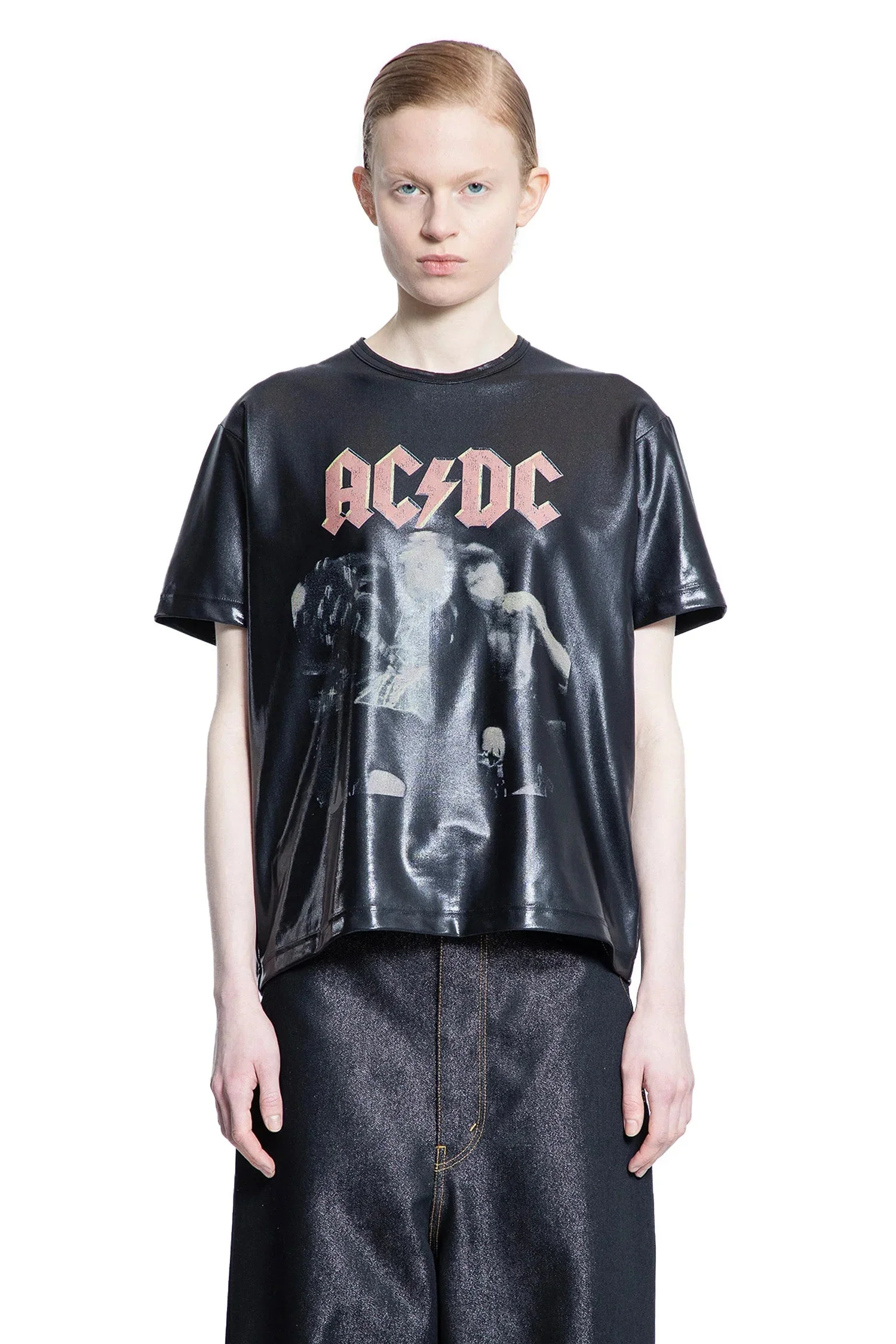 DESCRIPTION - Black - Coated nylon jersey - Round neck - Front ac/dc graphic print - Dropped shoulders - Short sleeves - Boxy fit DETAILS - Made in: Japan - Composition: 100% Polyester 85% Polyurethane 15% Metal - Model code: JOT013S25 1 - Item ID: 9498221838678 SIZE & FIT Model wears size S Model Height 180 cm Chest 82 cm Waist 58 cm Hips 90 cm