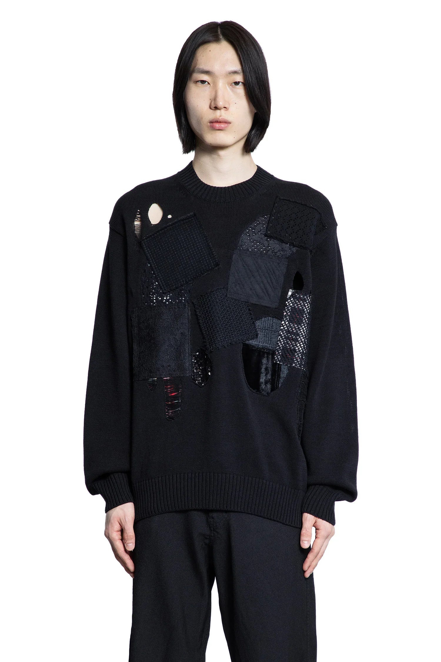 DESCRIPTION - Black - Distressed cotton knit - Crewneck - Front spliced patchwork - Dropped shoulders - Ribbed hem and cuffs - Relaxed fit DETAILS - Made in: Japan - Composition: 100% Cotton - Model code: WON006051 1 - Item ID: 9526129885526 SIZE & FIT Model wears size L Model Height 189 cm Chest 84 cm Waist 70 cm Hips 92 cm