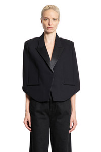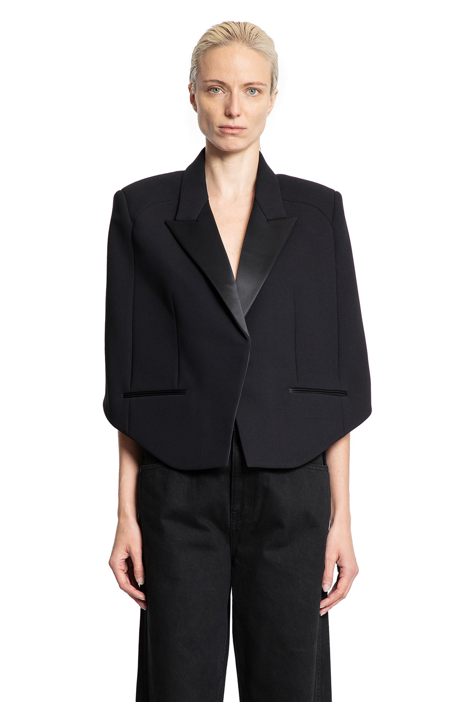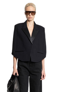 DESCRIPTION - Black - Double face crepe - Satin peak lapels - Padded shoulders - Concealed button closure - Side pockets - Raglan sleeves - Rounded hem DETAILS - Made in: United States - Composition: 100% Polyester - Model code: 61794114W4114 200 - Item ID: 9719755538774 SIZE & FIT Model wears size 4 Model Height 180 cm Bust 80 cm Waist 59 cm Hips 89 cm