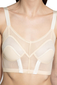 DESCRIPTION - Blonde - Stretch mesh and velvet - Scoop neck - Adjustable shoulder straps - Sleeveless - Back zip closure - Cropped hem - Fitted DETAILS - Made in: United Kingdom - Composition: 83% Nylon 17% Polyurethane - Model code: AW25UMAB0BLO - Item ID: 9891590242646