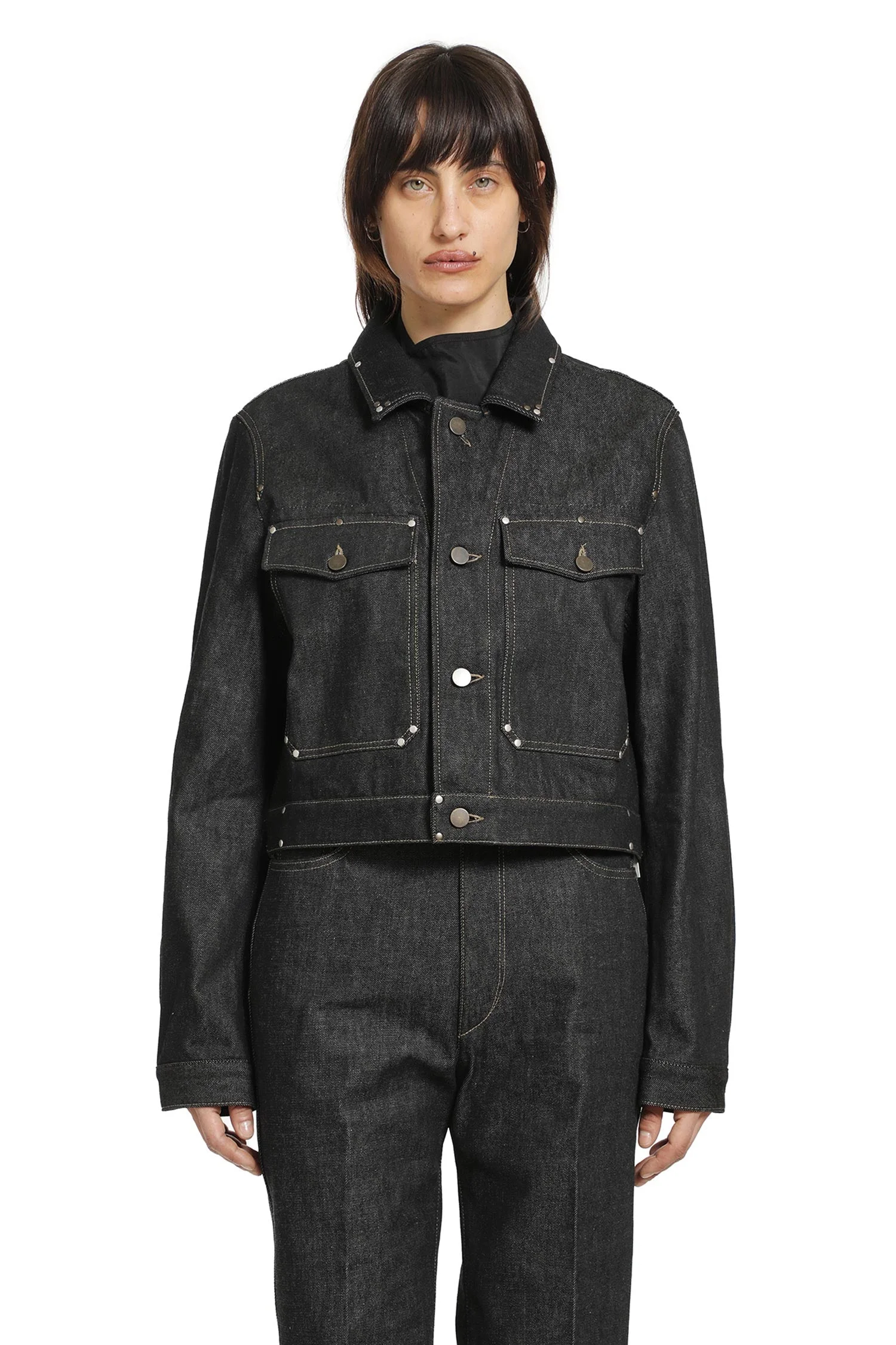 CROPPED BLOUSON WITH STUDS IN DENIM