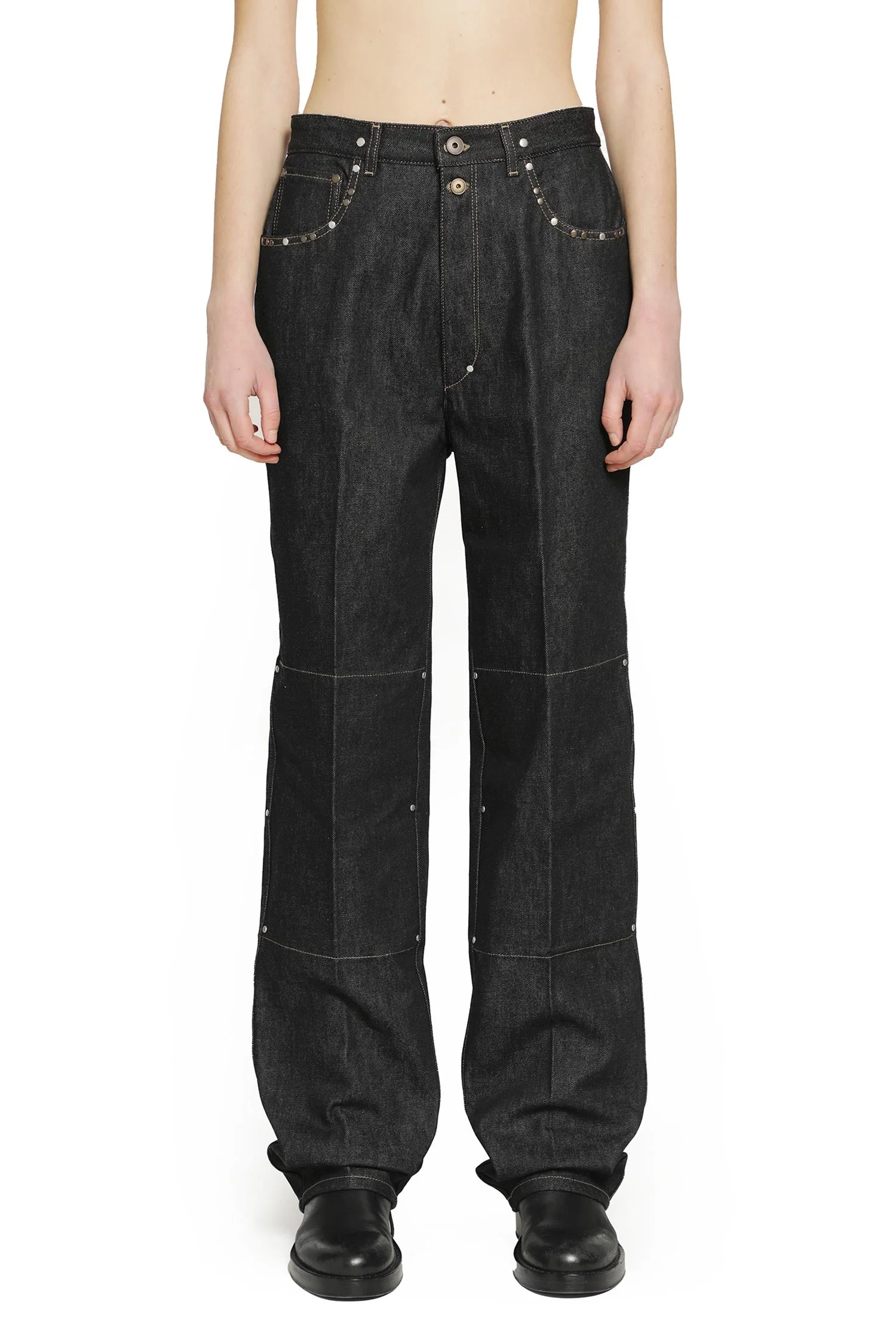 HIGH WAISTED STRAIGHT PANTS WITH STUDS IN DENIM