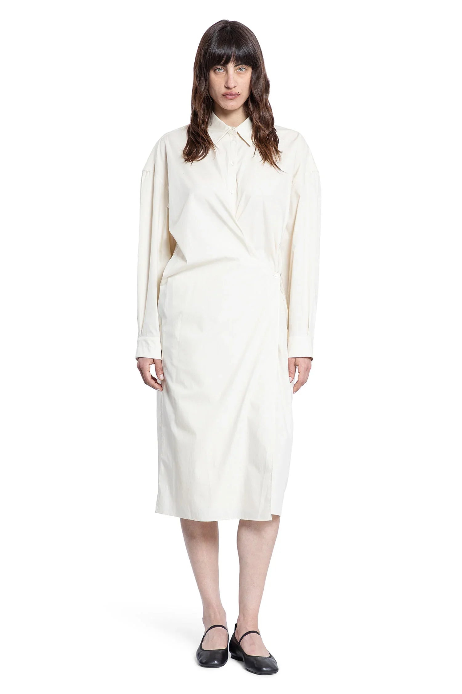DESCRIPTION - Cream - Cotton poplin - Classic collar - Button closure - Twisted front - Dropped shoulders - Buttoned cuffs - Relaxed fit DETAILS - Made in: Portugal - Composition: 100% Cotton - Model code: DR1092LF588 YE507 - Item ID: 9398252306774 SIZE & FIT Model wears size 38 Model Height 175 cm Bust 82 cm Waist 68 cm Hips 93 cm