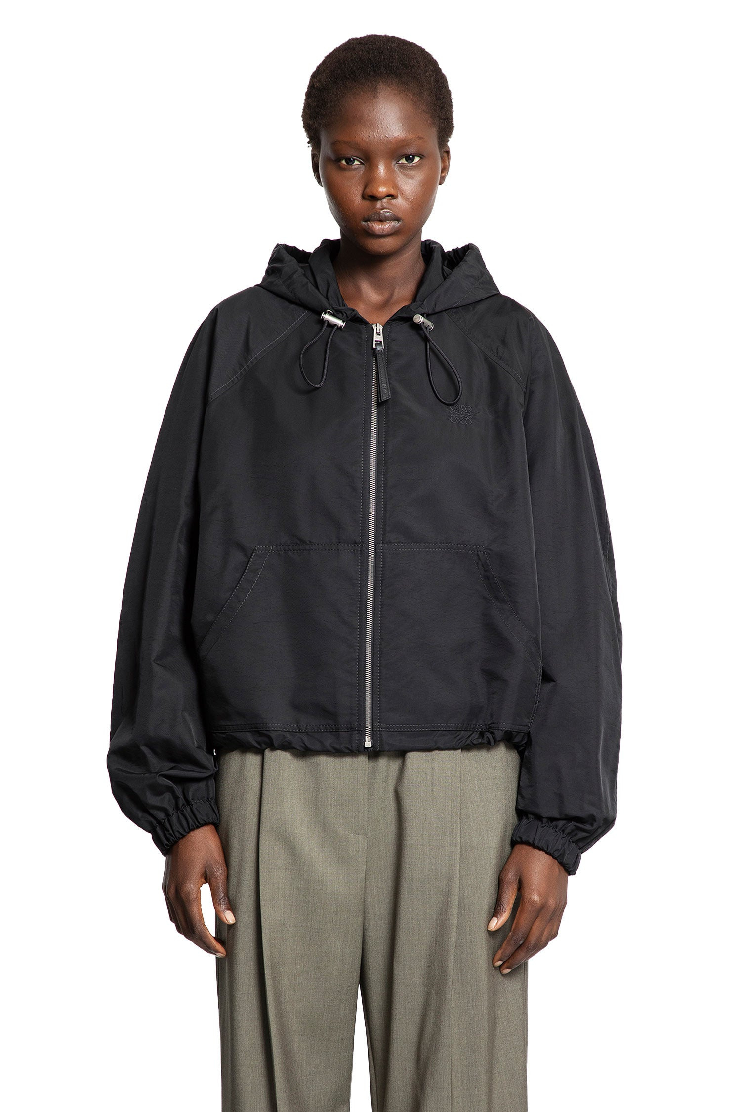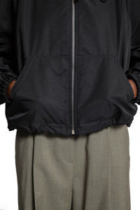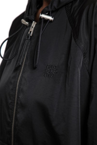 DESCRIPTION - Black - Lightweight technical fabric - Hood with drawstrings - Zip closure - Anagram chest embroidery - Front pockets - Raglan sleeves - Elasticated cuffs - Drawstring hem - Relaxed fit - Balloon silhouette DETAILS - Made in: Italy - Composition: 53% Cupro 47% Polyamide - Model code: S359Y02XEM 1100 - Item ID: 9728029917526 SIZE & FIT Model wears size 38 Model Height 180 cm Bust 77 cm Waist 57 cm Hips 97 cm