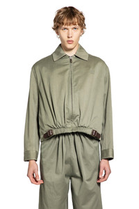 DESCRIPTION - Khaki green - Medium-weight garment-dyed cotton satin - Collar - Zip closure - Anagram chest embroidery - Side pockets - Dropped shoulders - Press stud cuffs - Back angram calfskin patch - Belted leather hem - Regular boxy fit DETAILS - Made in: Italy - Composition: 100% Cotton - Model code: H526Y02L01 4160 - Item ID: 9878689513814