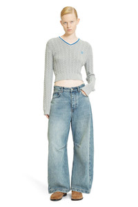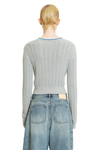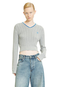 DESCRIPTION - Grey - Cable knits - Striped v-neck - Chest embroidered anagram - Dropped shoulders - Ribbed hem and cuffs - Cropped hem DETAILS - Made in: Italy - Composition: 100% Cotton - Model code: S359Y14KGB 1120 - Item ID: 9273366839638