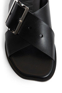 DESCRIPTION - Black - Vegetable-tanned calfskin - Crossed straps - Signature square buckle - Petal toe - Rubber sole DETAILS - Made in: Italy - Composition: 100% Calfskin - Model code: LWW1465X03 1100 - Item ID: 9309545267542