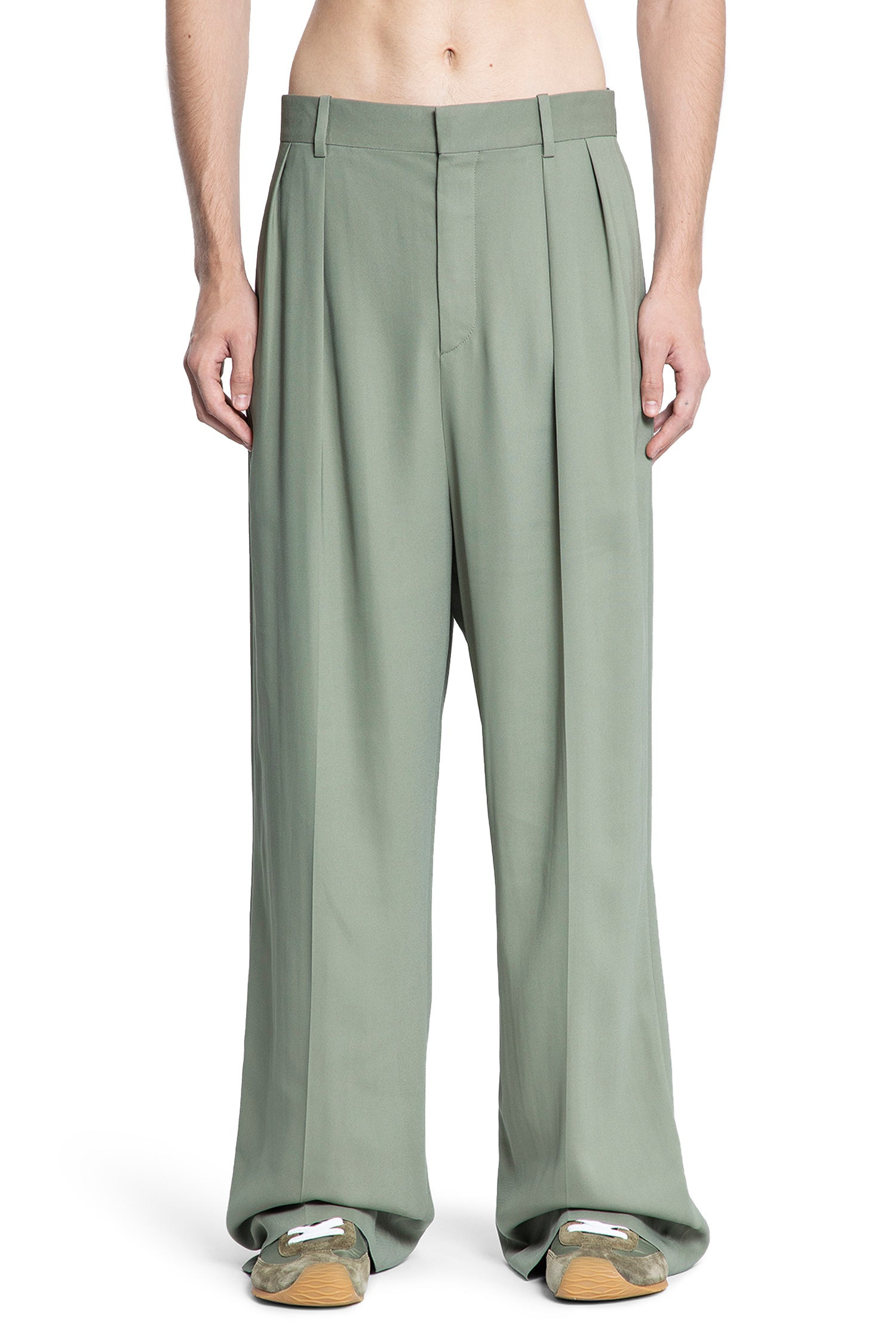 DESCRIPTION - Khaki green - Lightweight fluid viscose blend cady - Mid-waist - Belt holes - Hook and zip closure - Leg crease - Pleated front - Back anagram embroidery - Back buttoned pockets - Regular length - Straight leg - Regular fit DETAILS - Made in: Italy - Composition: 94% Cotton 4% Viscose 2% Polyamide - Model code: H526Y04WGZ 4160 - Item ID: 9677931118934 SIZE & FIT Model wears size 48 Model Height 186 cm Chest 89 cm Waist 72 cm Hips 90 cm