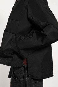 DESCRIPTION - Black - Lightweight cupro nylon twill - Collar - Button closure - Anagram calfskin chest pocket - Side pockets - Dropped back - Buttoned cuffs - Side self-tie hem straps - Relaxed fit DETAILS - Made in: Italy - Composition: 53% Cupro 47% Polyamide - Model code: S359Y02XF1 1100 - Item ID: 9840601366870