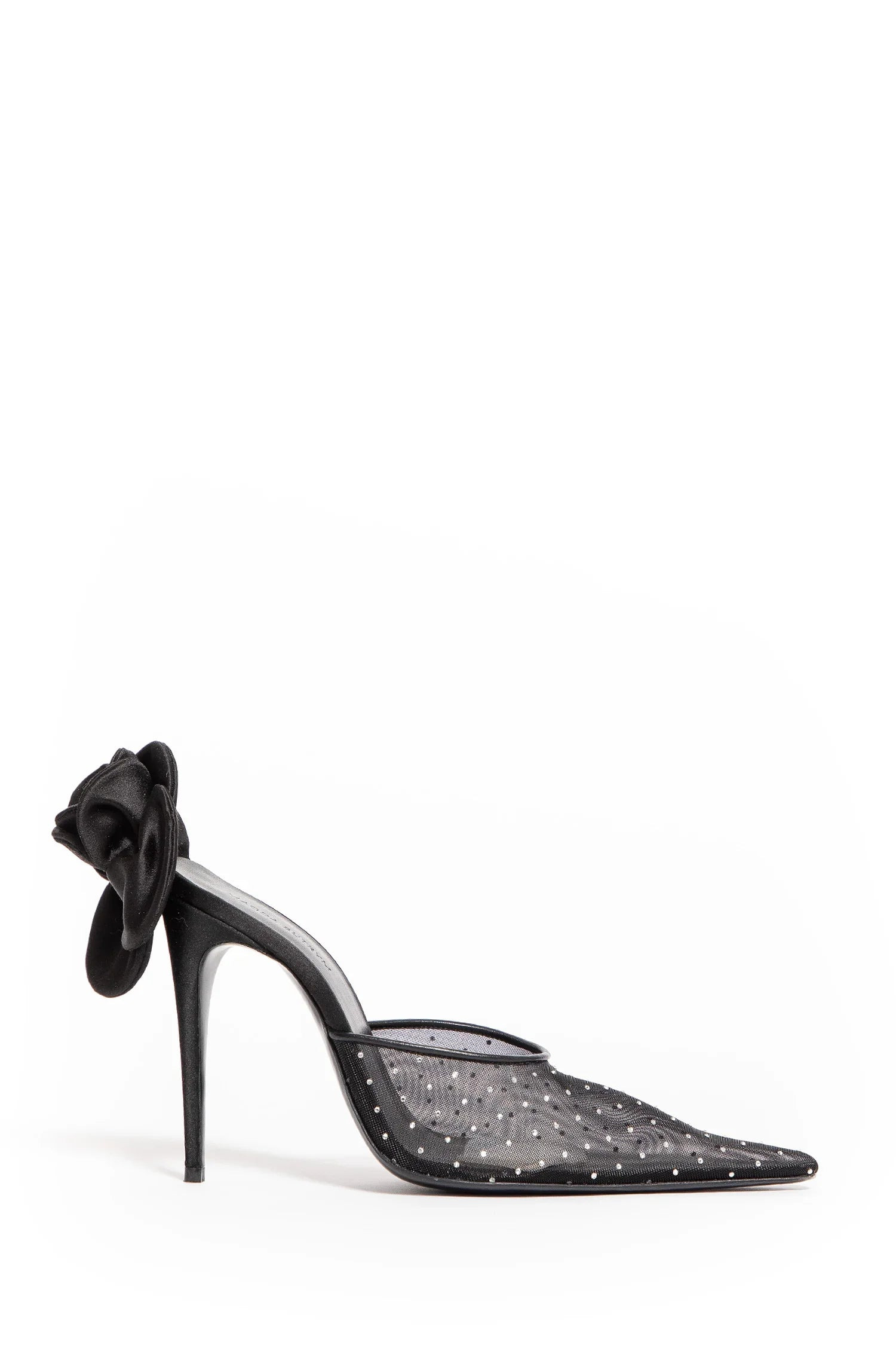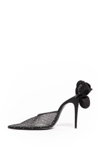 DESCRIPTION - Black - Mesh with rhinestones - Pointed toe - Silk satin 3d flower - Stiletto heel DETAILS - Made in: Italy - Composition: 100% Polyamide 100% Lambskin 100% Silk - Model code: 532425 BLACK - Item ID: 9273652904278