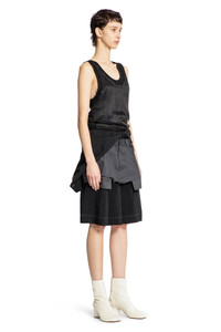 DESCRIPTION - Multicolor - Black/anthracite - Layered tank top with exposed cotton jersey lining - Front spliced cotton canvas shorts - Back stitch moniker - Back spliced tied-up upside-down satin shirt - Pleated skirt - Signature stitching hem trim DETAILS - Made in: Italy - Composition: 100% Viscose Fabric 2: 100% Cotton Fabric 3: 100% Cupro - Model code: S51DD0029MTN059 900 - Item ID: 9273449349462