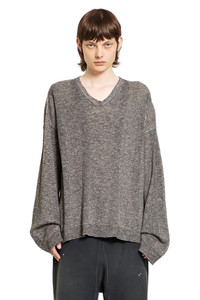DESCRIPTION - Grey - Cotton linen knit - V-neck - Dropped shoulders - Back stitch moniker - Ribbed hem and cuffs - Oversized fit DETAILS - Made in: Romania - Composition: 40% Linen 30% Polyester 30% Cotton - Model code: S50HN0012M13097 900F - Item ID: 9370562396502