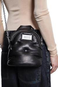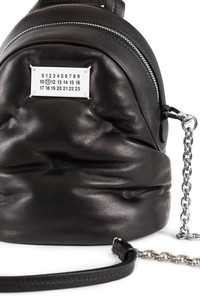 DESCRIPTION - Maison Margiela women's black Glam Slam backpack - - black - - Glam Slam leather - - top handles - - front numerical logo patch - - zip closure - - adjustable chain and leather shoulder straps - - 100% lambskin - - made in Italy DETAILS - Made in: Italy - Composition: 100% Lambskin - Model code: S56WA0014P4300 T8013 - Item ID: 8457265021270