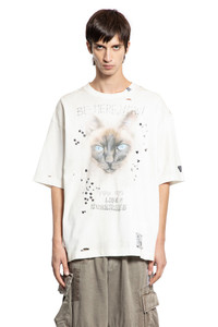 DESCRIPTION - White - Cotton jersey - Distressed details - Round neck with logo label - Front cat graphic print with rhinestones - Front logo label - Dropped shoulders - Short sleeves - Oversized fit DETAILS - Made in: Japan - Composition: 100% Cotton - Model code: J15TS752 WHITE - Item ID: 9750025929046 SIZE & FIT Model wears size 46 Model Height 186 cm Chest 89 cm Waist 72 cm Hips 90 cm
