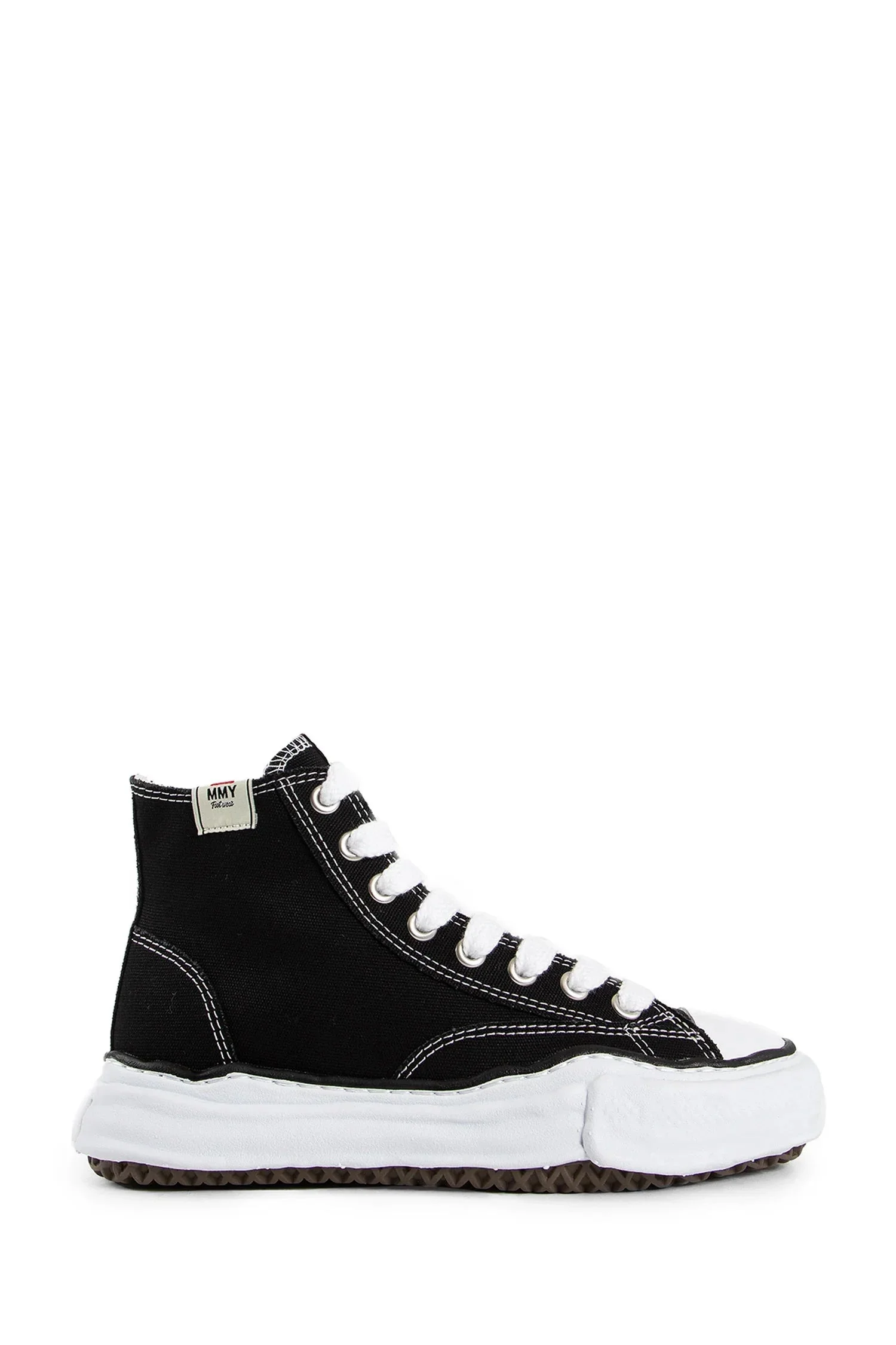 DESCRIPTION - Maison mihara yasuhiro men's black peterson og high sneakers - - black - - high - top - - contrast stitching - - tongue with logo tag - - lace closure - - rubber sole - - 100% textile DETAILS - Made in: China - Composition: 100% Textile - Model code: A01FW701 BLACK - Item ID: 8482395586902