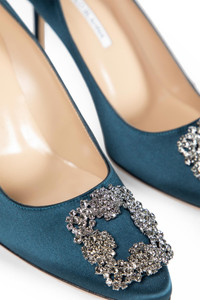 DESCRIPTION - Blue - Satin - Almond toe - Front crystal buckle - Stiletto heel DETAILS - Made in: Italy - Composition: 72% Viscose 28% Silk - Model code: 9XX0662 4029 - Item ID: 9808583655766