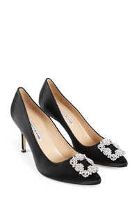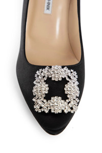 DESCRIPTION - Black - Satin - Almond Toe - Square Crystal Buckle - Leather sole - Stiletto Heel DETAILS - Made in: Italy - Composition: 68% Viscose 32% Silk - Model code: 9XX0317 0015 - Item ID: 9265013817686