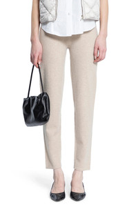 DESCRIPTION - Beige - Cashmere stockinette-stitching - High-waisted - Elastic waistband - Straight leg - Semi-fitted DETAILS - Made in: Italy - Composition: 100% Cashmere - Model code: 2511331018600 002 - Item ID: 9337808912726 SIZE & FIT Model wears size S Model Height 178 cm Bust 85 cm Waist 73 cm Hips 92 cm