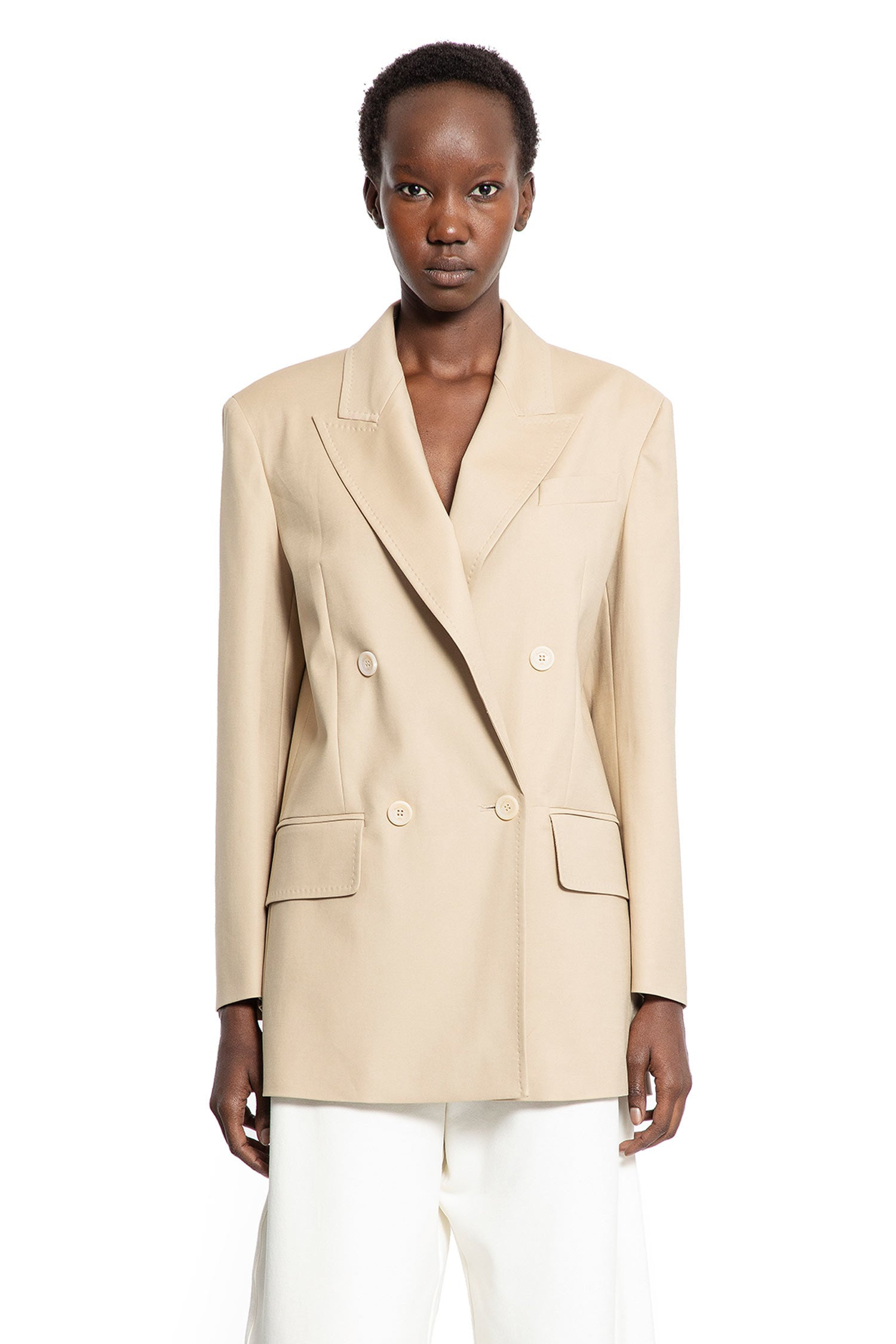 DESCRIPTION - Sand - Stretch cotton canvas - Tailored pick stitching seams - Peak lapels - Double-breasted - Button closure - Chest pocket - Side flap pockets - Buttoned cuffs - Back splits DETAILS - Made in: Italy - Composition: 95% Cotton 5% Elastane - Model code: 2521046071600 012 - Item ID: 9744387998038