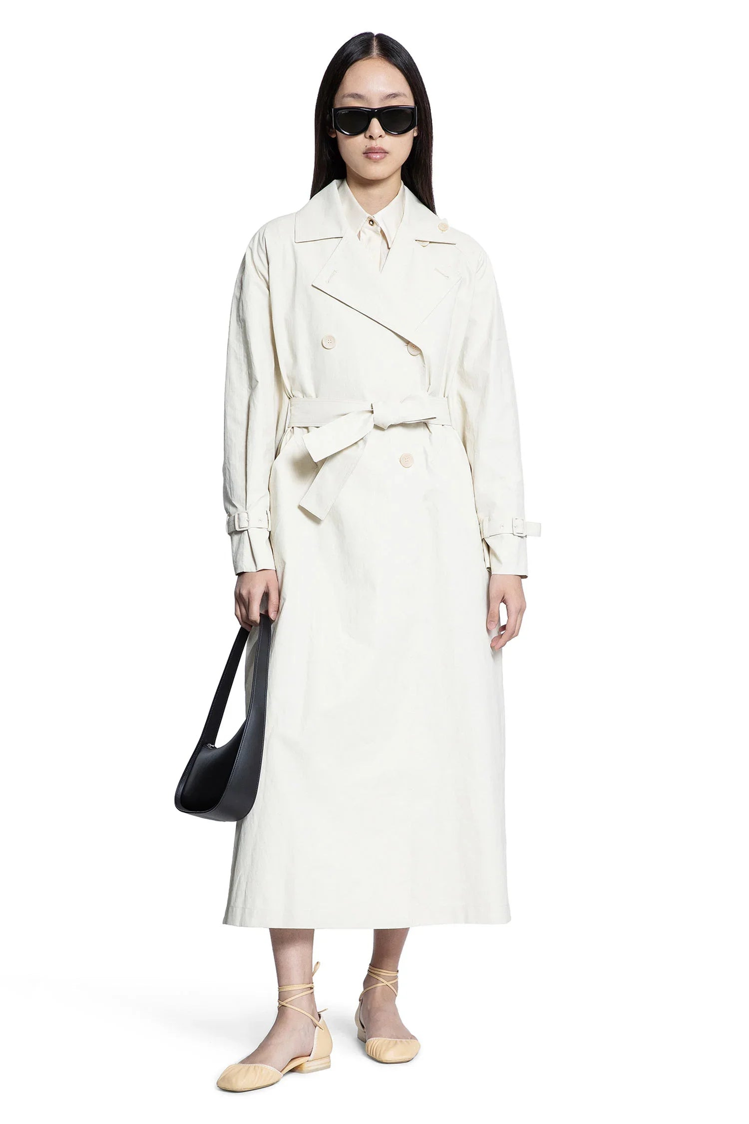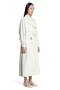 DESCRIPTION - Runway style - Beige - Linen twill - Double-breasted - Notched collar - Button closure - Self-tie belt - Side pockets - Raglan long sleeves - Adjustable tab cuffs - Straight silhouette DETAILS - Made in: Italy - Composition: 100% Linen - Model code: 2511021123600 001 - Item ID: 9502222418262 SIZE & FIT Model wears size 40 Model Height 177 cm Bust 76 cm Waist 63cm Hips 89 cm