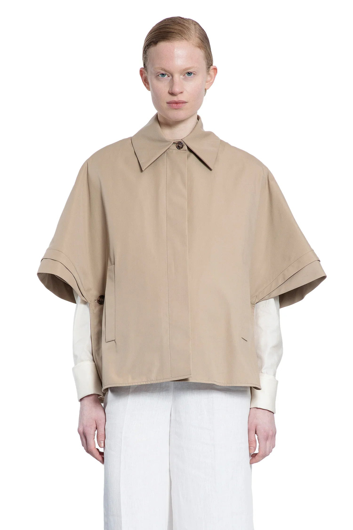 DESCRIPTION - Colonial - Cotton gabardine - Water-repellent - Collar - Concealed button closure - Side pockets - Loose-fit short kimono sleeve - Side adjustable buttoned panels DETAILS - Made in: Italy - Composition: 100% Cotton - Model code: 2514731181600 003 - Item ID: 9498212696406 SIZE & FIT Model wears size S/M Model Height 180 cm Chest 82 cm Waist 58 cm Hips 90 cm