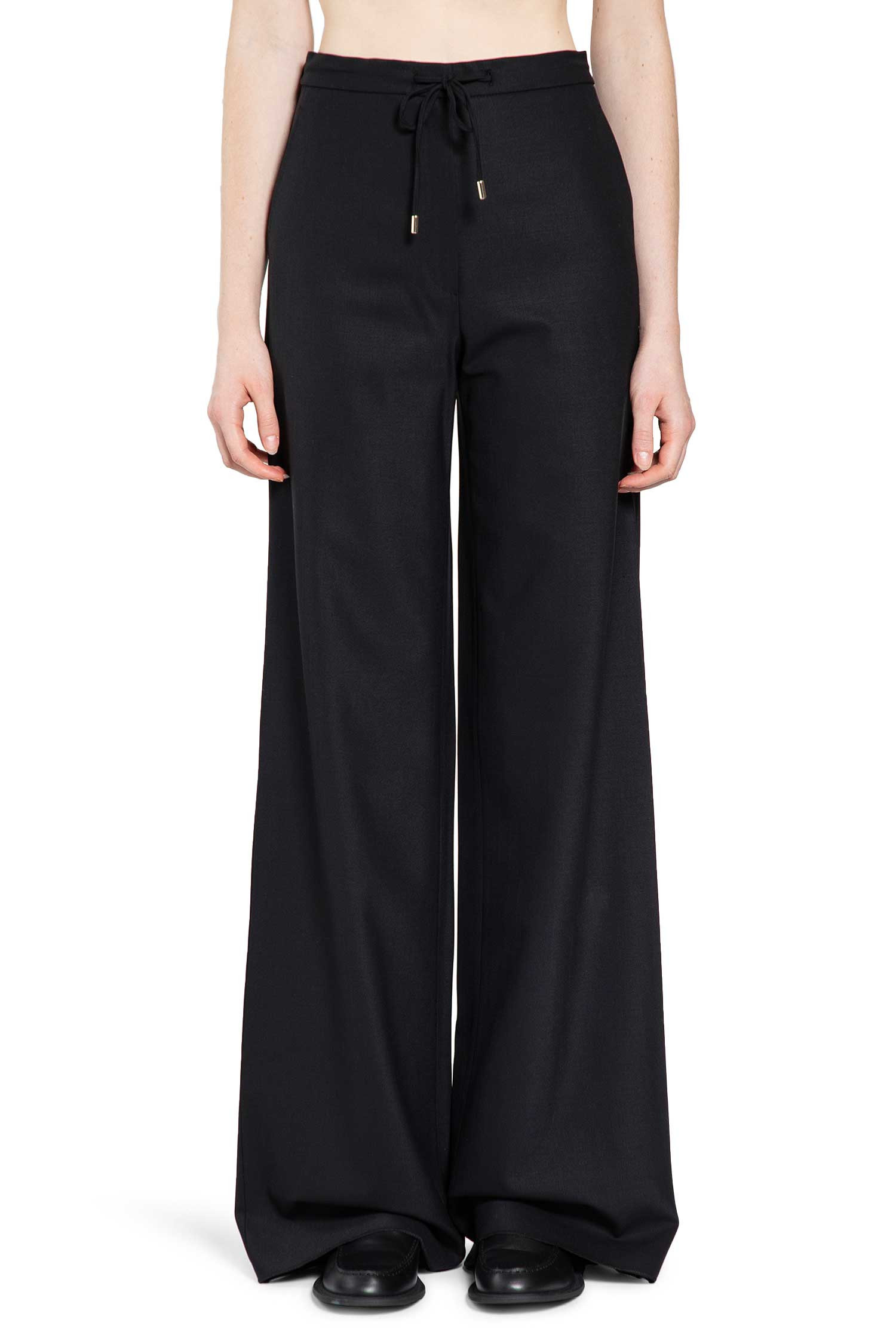 DESCRIPTION - Black - Stretch wool twill - Drawstring waist - Hook and zip closure - Side pockets - Wide leg - Foor length - Relaxed fit DETAILS - Made in: Italy - Composition: 100% Wool - Model code: 2526136072600 005 - Item ID: 9875657228630