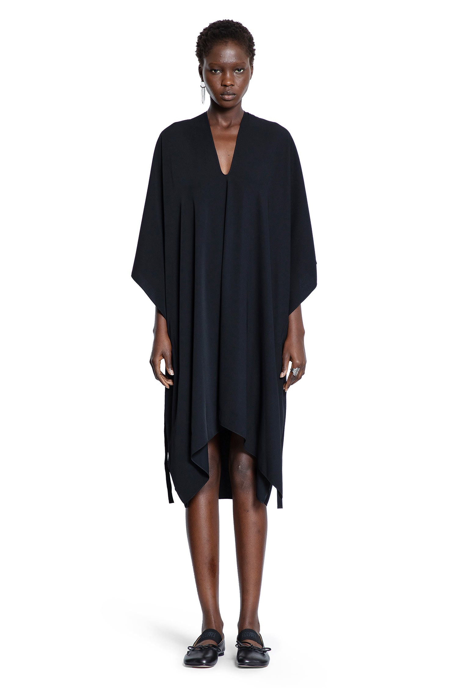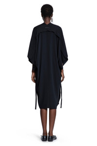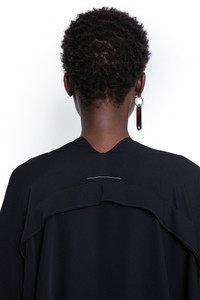 DESCRIPTION - Black - V-neck - Wide kimono sleeves - Front pleat - Back stitch moniker - Asymmetric hem - Draped - Cape-like silhouette DETAILS - Made in: Italy - Composition: 100% Polyester - Model code: S52DD0069S43455 900 - Item ID: 9700187799894 SIZE & FIT Model wears size 38 Model Height 180 cm Bust 77 cm Waist 57 cm Hips 87 cm