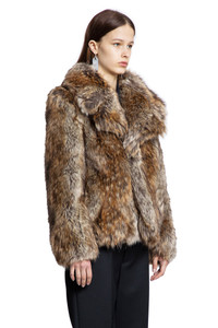 DESCRIPTION - Brown - Faux fur - Oversized collar - Concealed button closure DETAILS - Made in: Italy - Composition: 80% Acrylic 20% Polyester - Model code: S52AM0326M35464 001F - Item ID: 9741269205334 SIZE & FIT Model wears size 38 Model Height 178 cm Bust 84 cm Waist 60 cm Hips 88 cm