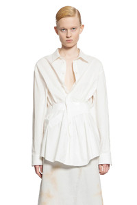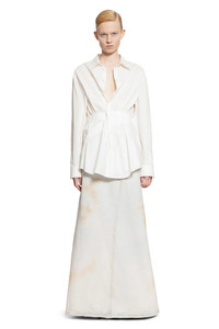 DESCRIPTION - Off-white - Classic collar - Button closure - Gathered waist - Dropped shoulders - Long sleeves - Buttoned cuffs - Back stitch moniker - Curved hem DETAILS - Made in: Italy - Composition: 100% Cotton - Model code: S52DT0045M35256 101 - Item ID: 9273472876886
